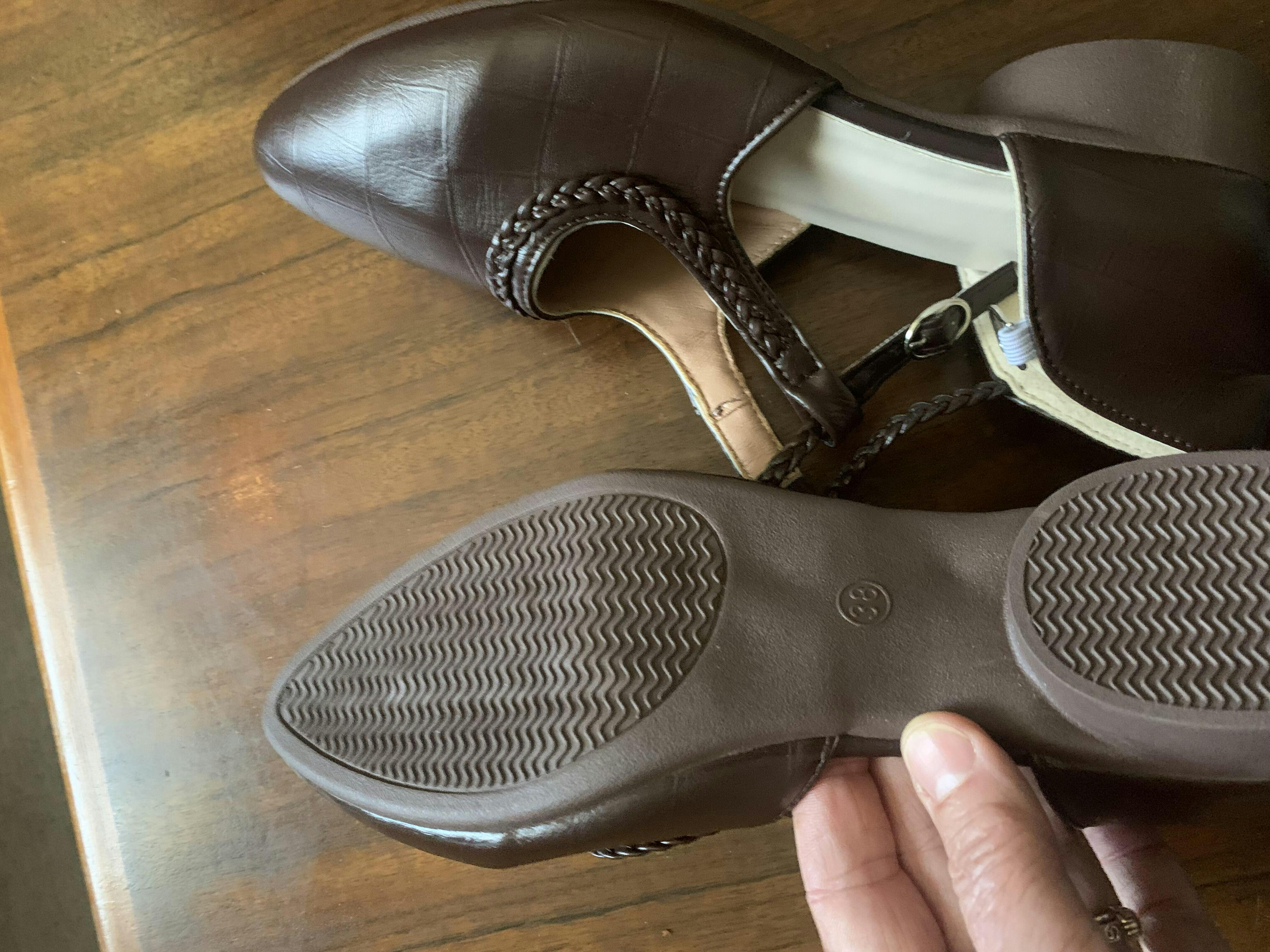 These shoes are terrible. I have returned them to you and require a full refund. They are plastic. They have cheap thin soles, the buckle broke off as I I handled them to try on. They are nothing like the elegant shoes in the picture, extremely disappointed with this purchase. They have a clunky unattractive plastic plait across the front of the shoe. I feel cheated. Full refund is required for the rubbish you sent me