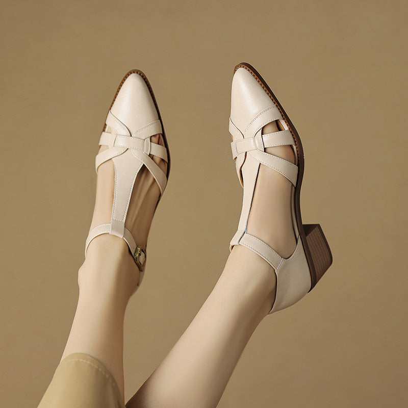 Graceful structure meets subtle femininity in these softly contoured T-strap heels. The matte finish and sculpted lines create an effortless balance between polish and comfort. Designed for refined everyday wear with a nod to timeless European form.